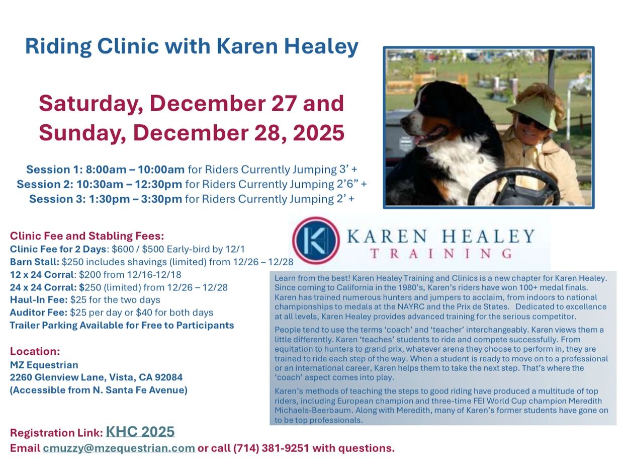 MZ Equestrian is hosting a two-day Riding Clinic with Karen Healey.
